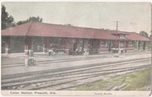 1914 Postcard Union Station Railroad Depot Prescott Arkansas