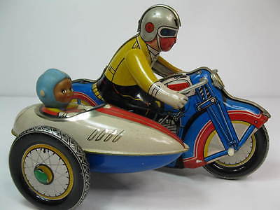 Title (ebay affiliate link): Vintage Wind-up Motorcycle w/ Sidecar Tin Toy MS-709 China 1960s Works!