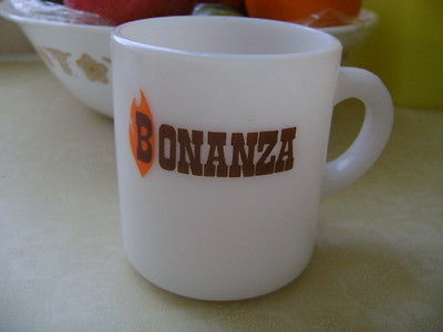 Title (ebay affiliate link): Anchor Hocking FIRE KING Milk Glass BONANZA RESTAURANT Advertising Cup Mug