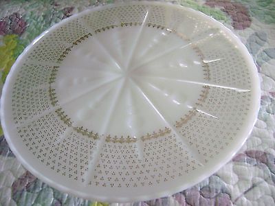 Antique MILK GLASS PEDESTAL CAKE STAND with GOLD SPECKLED Plate Desgin 10.25"