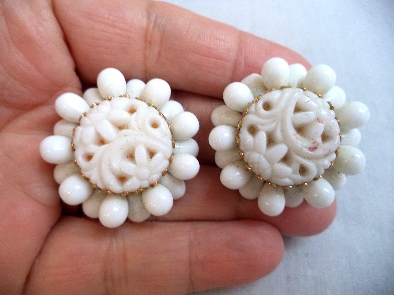 Title (ebay affiliate link): STUNNING VINTAGE ESTATE SIGNED NAPIER GOLD TONE MILK GLASS CLIP EARRINGS!! 6292X