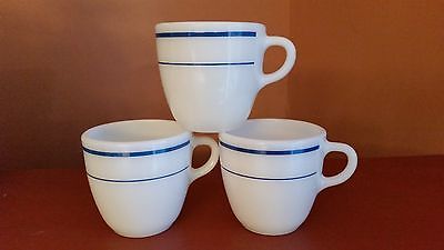 3 Vintage Pyrex Tableware Teal Aqua Stripe Milk Glass Mugs