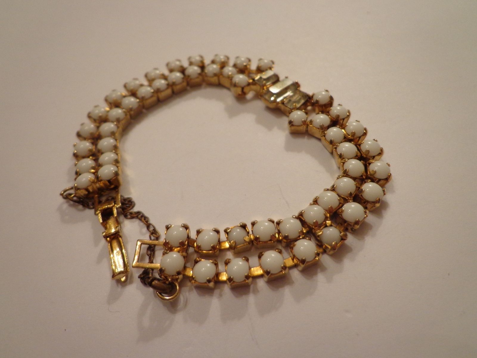 VINTAGE ART DECO MILK GLASS RHINESTONE BRACELET 7"