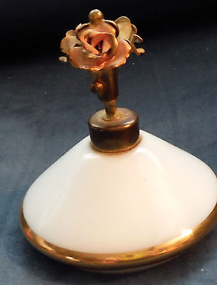 VTG PERFUME BOTTLE IRICE WHITE MILK GLASS W GOLD TRIM ART DECO UNIQUE