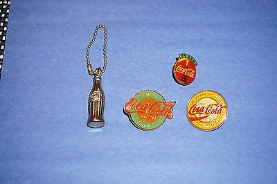 Vintage Coca Cola pin assortment with Coke bottle key ring