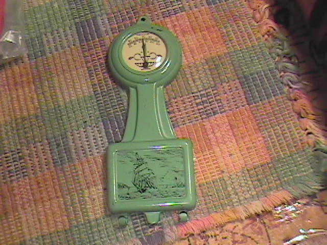 40S NAUTICAL SHIP AQUA GREEN METAL THERMOMETER