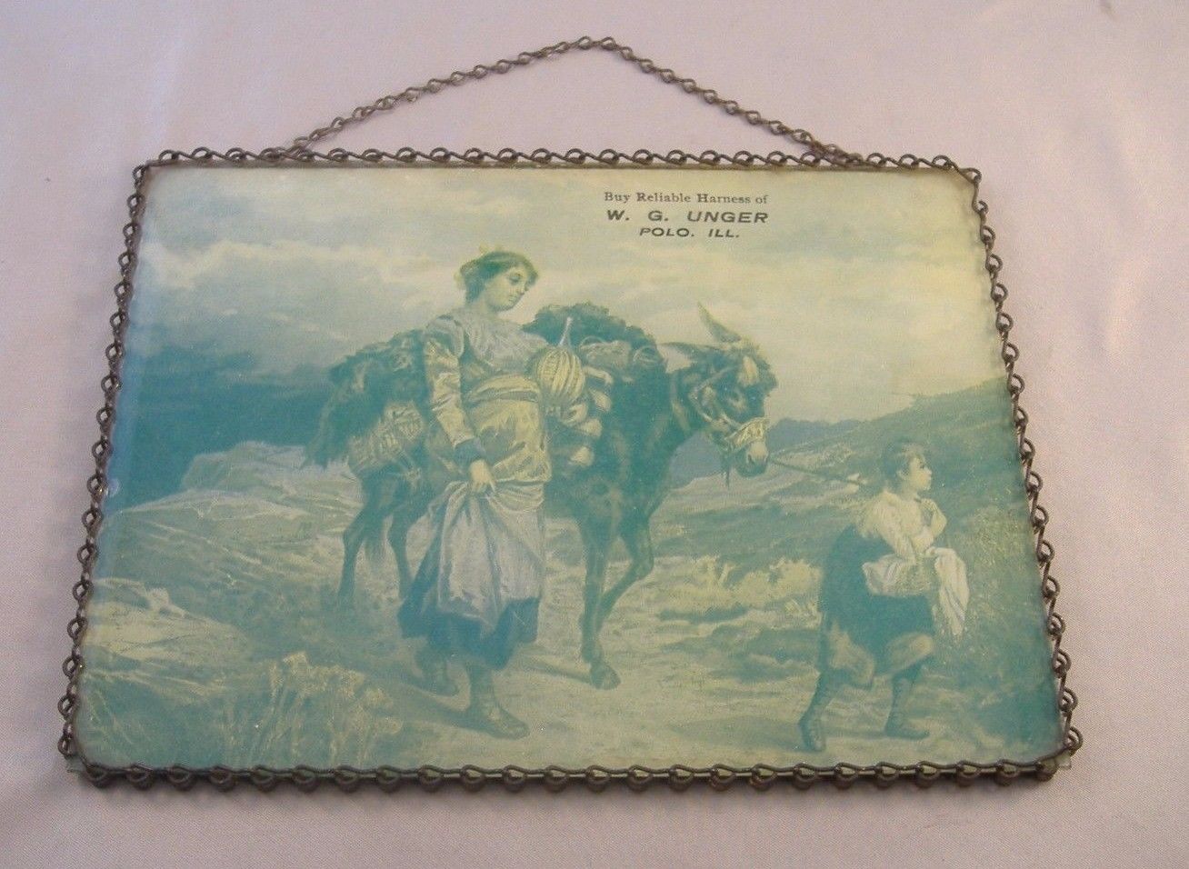 Title (ebay affiliate link): Vintage Reliable Harnes W.G. UNGER Store Polo, IL Glass Advertising Sign Framed