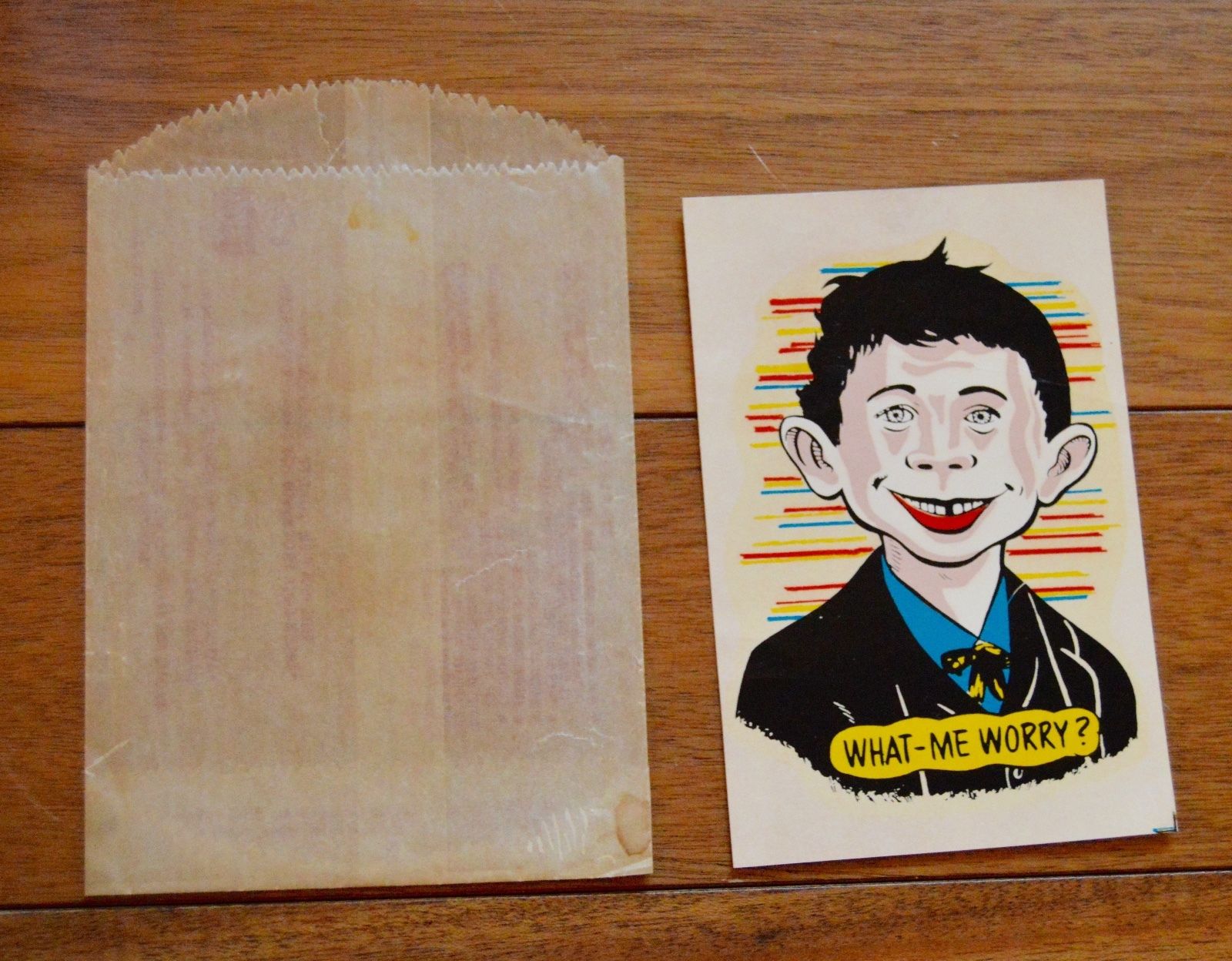 Title (ebay affiliate link): Vintage 1950's Mad Magazine Alfred E. Neuman Novelty Comic Decal w/Original Bag