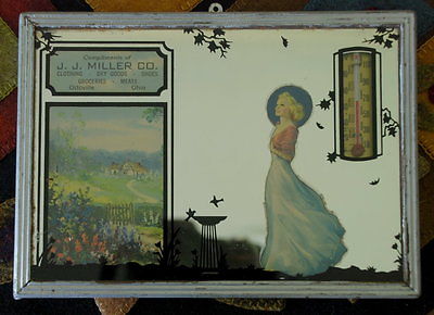 Vintage Advertising 1951 Mirror Thermometer Silhouette Ottoville OH Ohio Miller