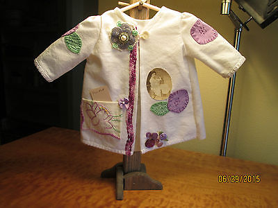 Title (ebay affiliate link): Doll Coat made from a vtg table cloth with antique picture.. French bead