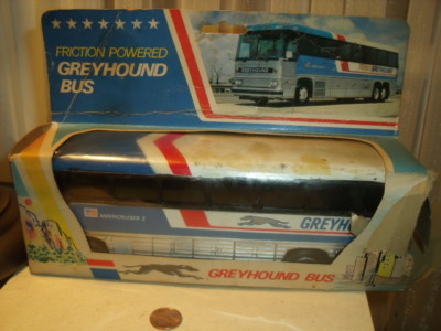 VINTAGE GREYHOUND BUS PLASTIC FRICTION TOY