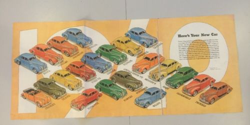 Vintage 1940 Here's Your New Car Poster Chevrolet Ford Plymouth Packard & More