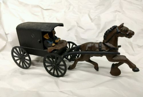 Title (ebay affiliate link): Vintage Cast Iron Toy Horse Drawn Carriage Wagon With Amish Family