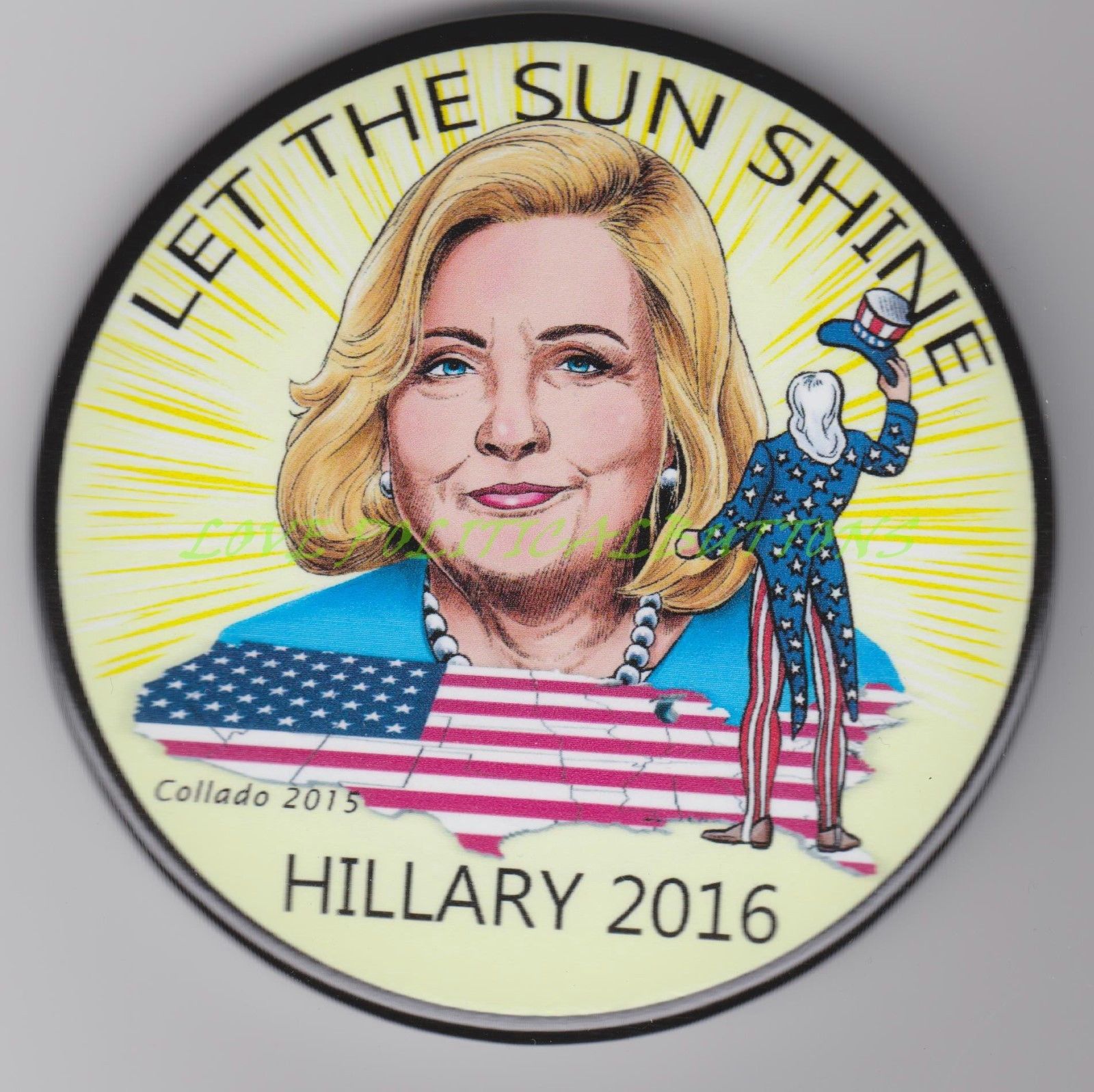 HILLARY CLINTON 2016 UNCLE SAM LET THE SUN SHINE POLITICAL BUTTON PINBACK 3 IN.