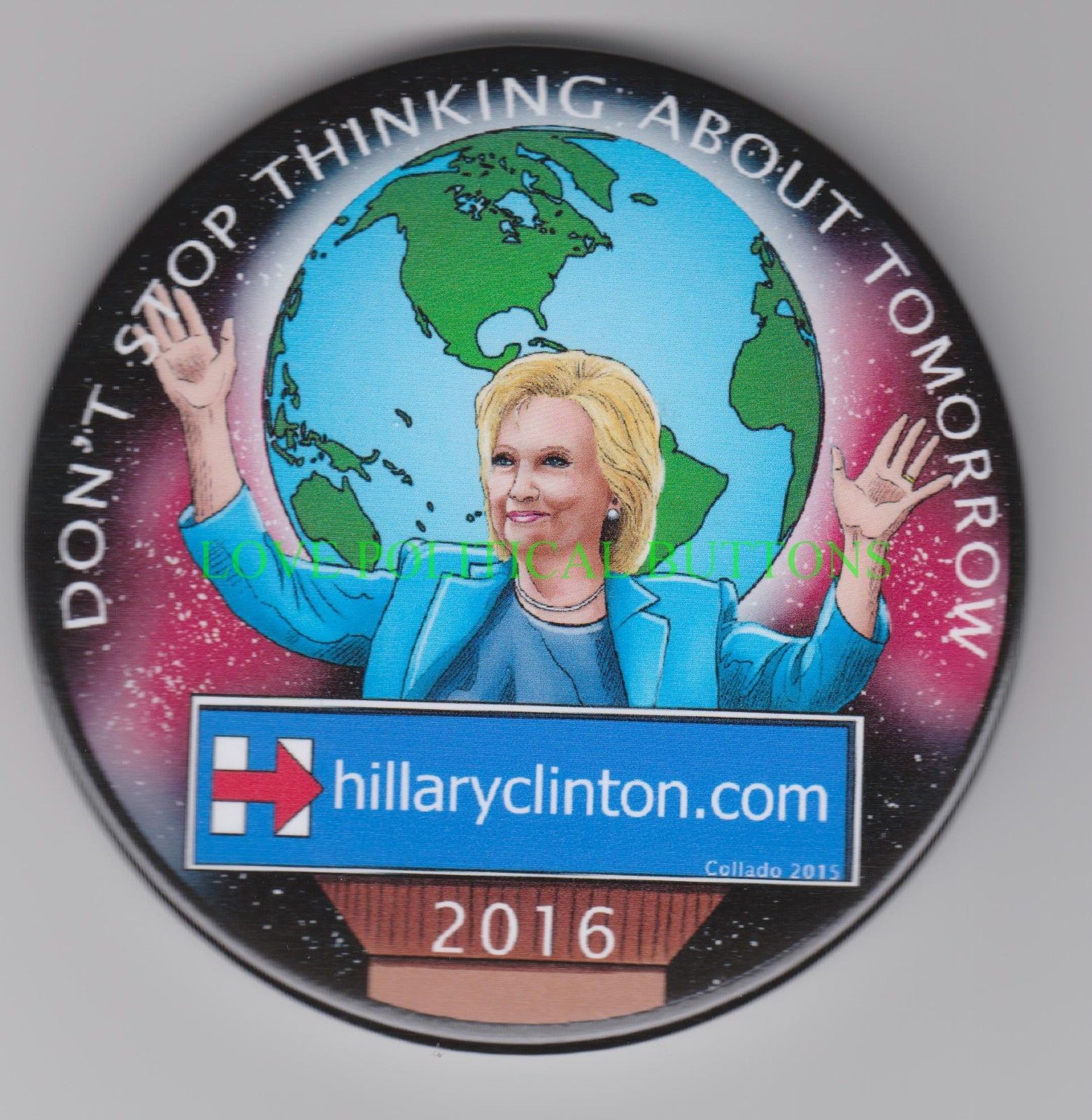 Title (ebay affiliate link): HILLARY CLINTON 2016 THINKING ABOUT TOMORROW POLITICAL BUTTON PINBACK 3 INCHES