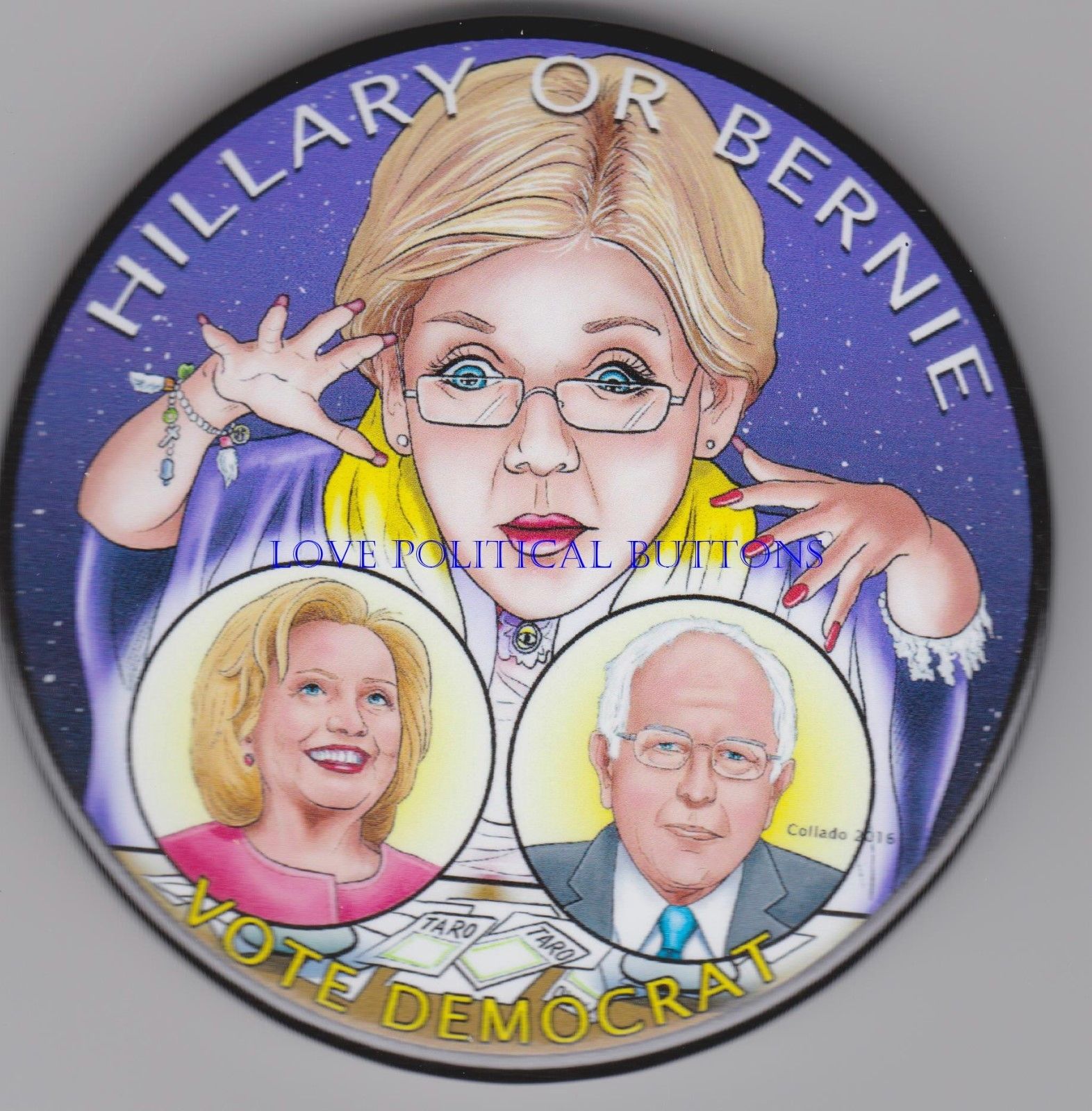 ELIZABETH WARREN VOTES DEMOCRAT HILLARY OR BERNIE POLITICAL BUTTON PINBACK 3 IN