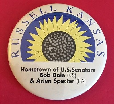 Title (ebay affiliate link): Russell Kansas Hometown of US Senators Bob Dole and Arlen Specter Pinback Button