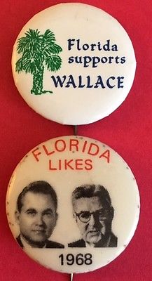 Title (ebay affiliate link): Two Florida Supports Wallace 1968 Pinback Buttons