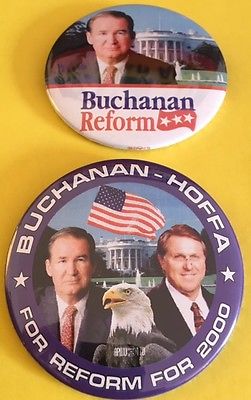 Title (ebay affiliate link): Two Reform Party 2000 Buchanan and Buchanan-Hoffa President Pinback Buttons