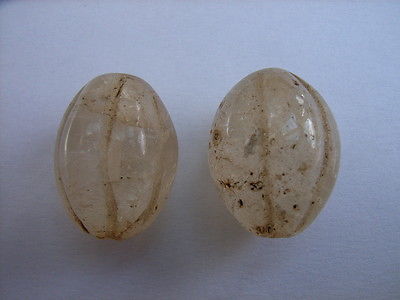 2 Ancient Egyptian Melon Rock Crystal Beads Egypt TOP !