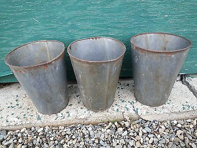 ANTIQUE 3 Maple Syrup OLD Tin Sap Buckets 9" High Great for FLOWERS Planters