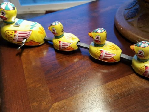 Title (ebay affiliate link): WORKING VINTAGE WIND UP TIN TOY, MAMA DUCK with 3 DUCKLINGS