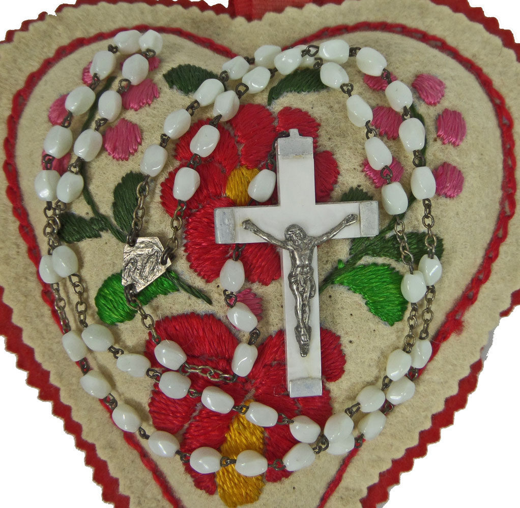 Lourdes France Milk Glass Twisted Bead Rosary Holy Water Relic Crucifix