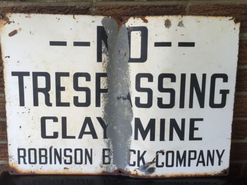 Title (ebay affiliate link): Vintage Metal 20 X 14 No Trespassing Coal Clay Mine Sign Oil Can