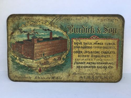 Title (ebay affiliate link): Antique Advertising Tin Litho Sign Burdick & Son Albany NY Hardware Mfg