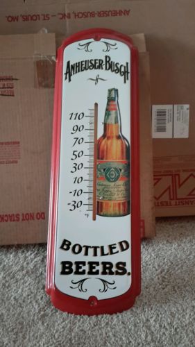 Title (ebay affiliate link): Budweiser Metal Tin Thermometer Anheuser Busch Beer Red White New