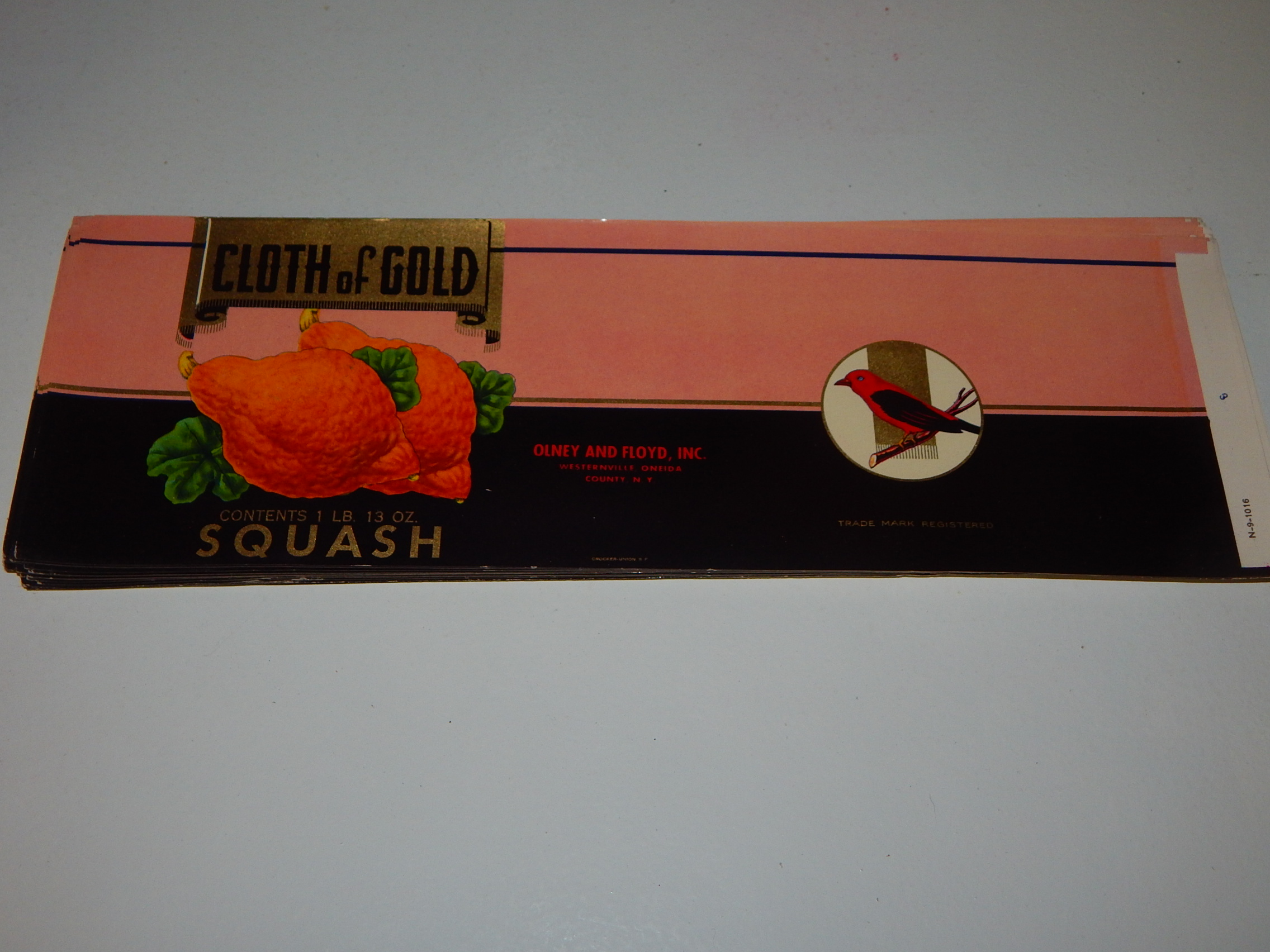 Vintage lot of 44 Olney & Floyd Cloth of Gold Squash Can Labels