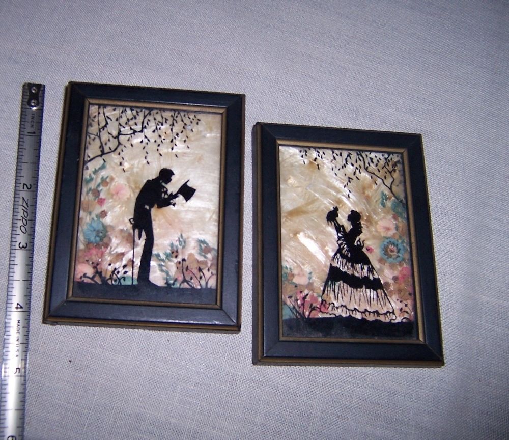 Title (ebay affiliate link): VINTAGE hand PAINTED GLASS SILHOUETTE PICTURE courting COUPLE MINIATURE
