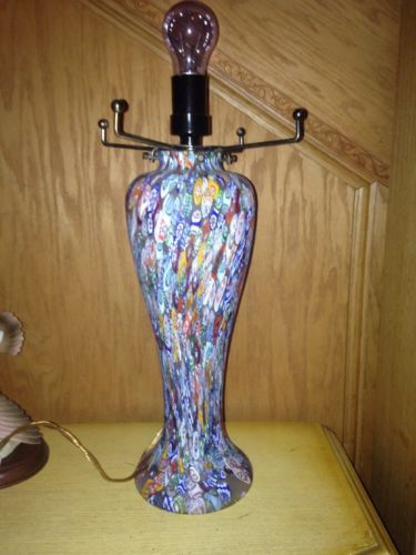| Antique Murano Satin Glass Millefiori Lamp Base No Shade |