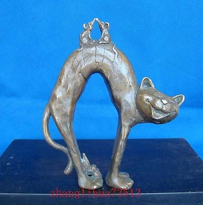 Antique Collectible Handmade Statue Copper Cat and Rat Art Deco