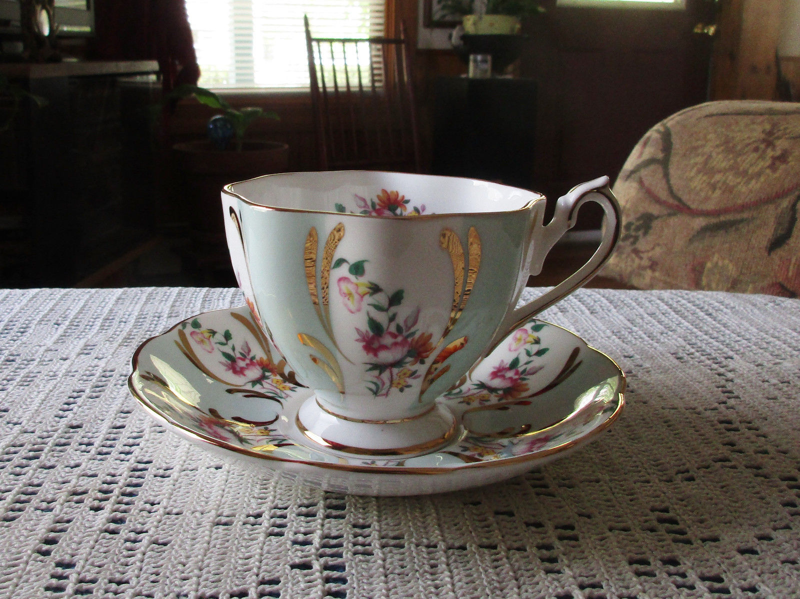Title (ebay affiliate link): Vintage Queen Anne Floral & Gold Designs & Trim Footed Cup & Saucer