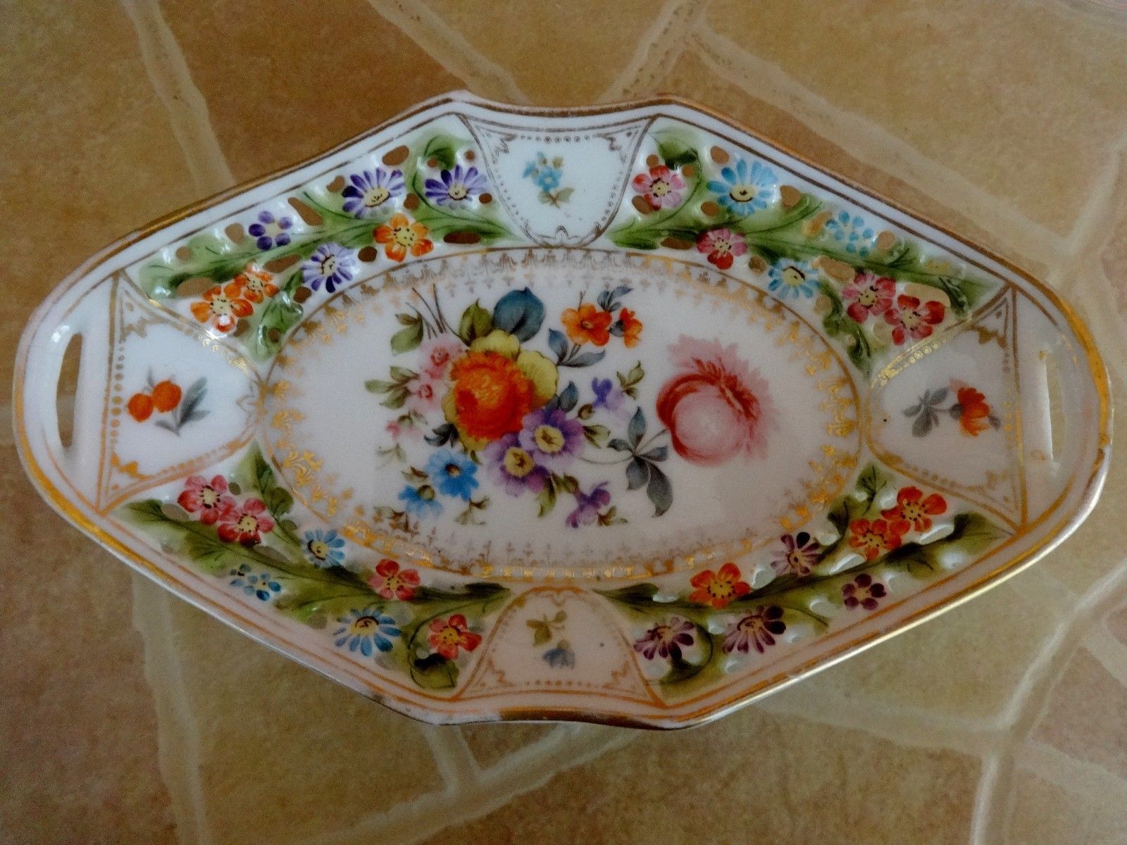 Antique Rudolf Wachter RW Bavaria Reticulated Oval Bowl-Dresden