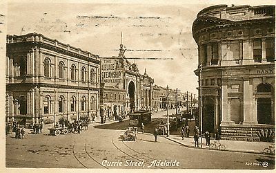 vintage postcard Currie Street Adelaide tram old cars horse carriage bank 1914