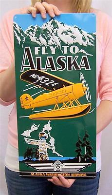 AWA Alaska Washington Airways Retro Hanging Tin Sign Old Style Ad Wall Decor 18"