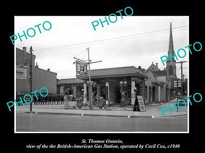 OLD LARGE HISTORIC PHOTO OF St THOMAS ONTARIO, THE BA OIL Co GAS STATION 1940