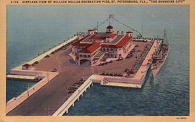 Aerial of Recreation Pier St. Petersburg Florida FL - Old Vintage Linen Postcard