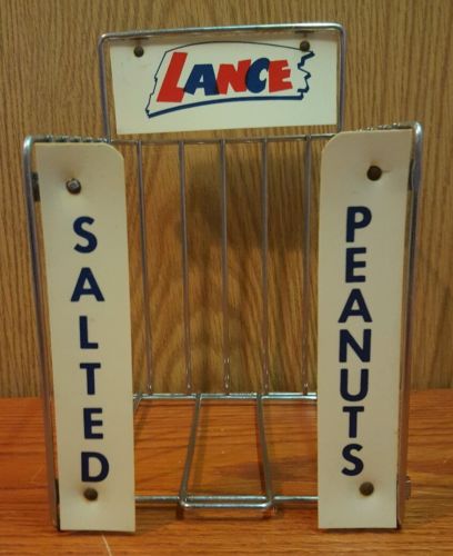 Title (ebay affiliate link): Vintage Lance Salted Peanuts Counter Display Rack Holder Dispenser