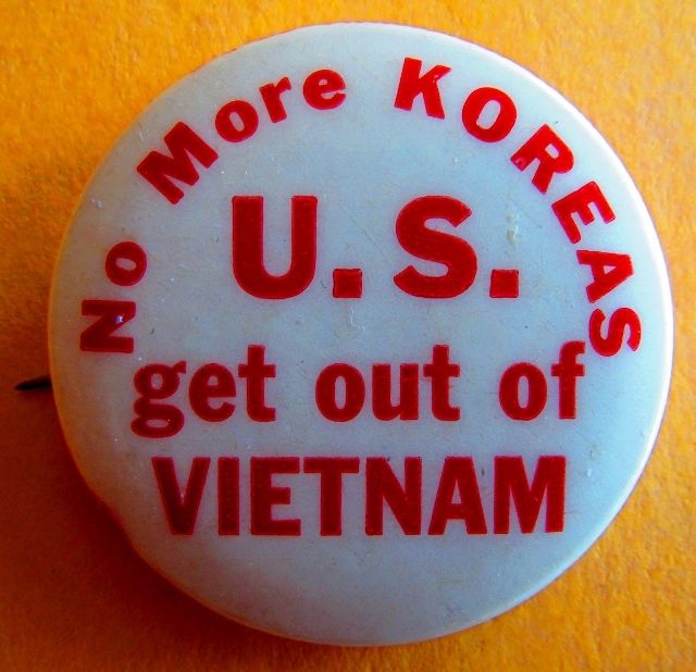 Title (ebay affiliate link): Vintage 60s Anti War Protest Pin Pinback Button US Out of Vietnam No More Koreas