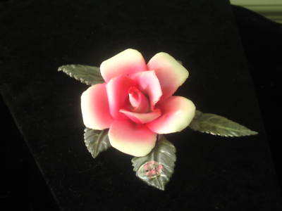 Title (ebay affiliate link): Vintage Capodimonte Porcelain Rose on Metal Leaf Stand
