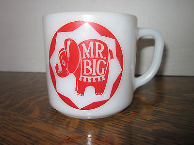 Vintage Fire King milk glass mug cup Mr. Big carnival circus