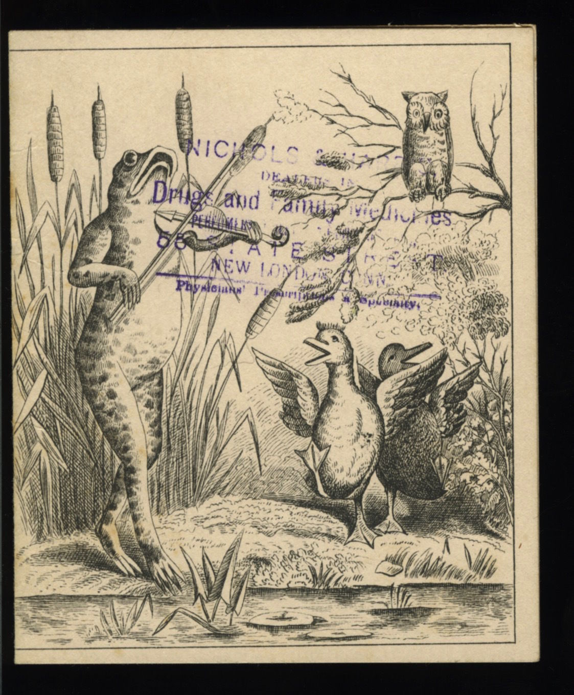 FROG VIOLIN DUCKS SINGING OWL DR MORSES QUACK MEDICINE TRADE CARD BOOKLET