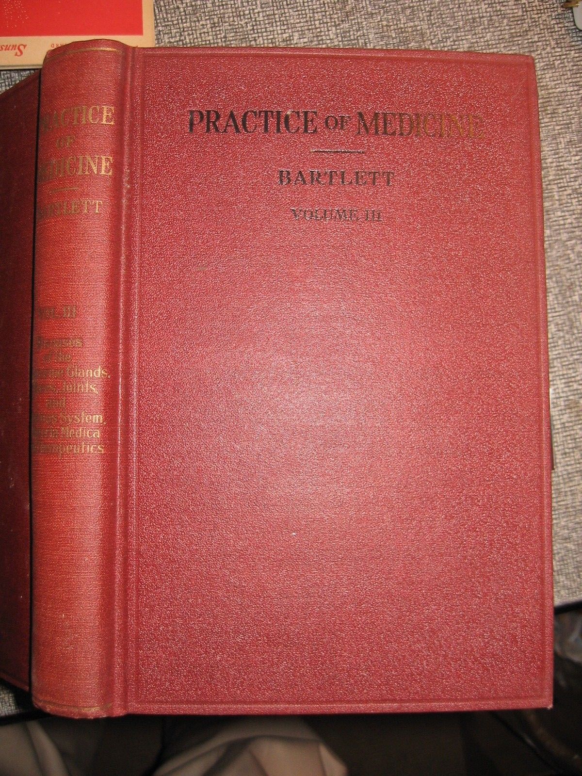Title (ebay affiliate link): ANTIQUE MEDICAL BOOK TREATISE ON THE PRACTICE OF MEDICINE BY CLARENCE BARTLETT