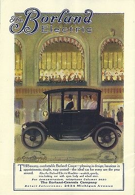 1912 BORLAND - GRANNIS CO, CHICAGO, ILLINOIS ELECTRIC CAR COLOR ADVERTISEMENT