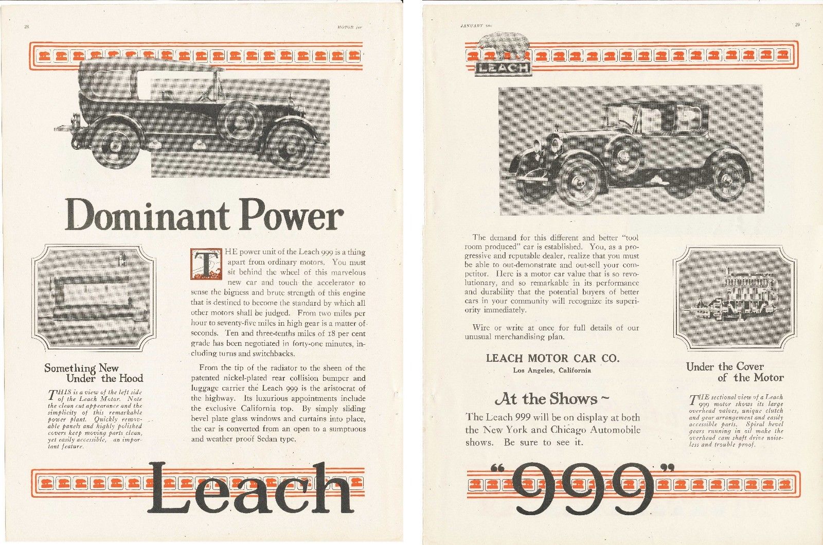 Title (ebay affiliate link): 1923 LEACH MOTOR CAR ADVERTISEMENT LOS ANGELES CALIFORNIA - 2 PAGE AD - ORIGINAL