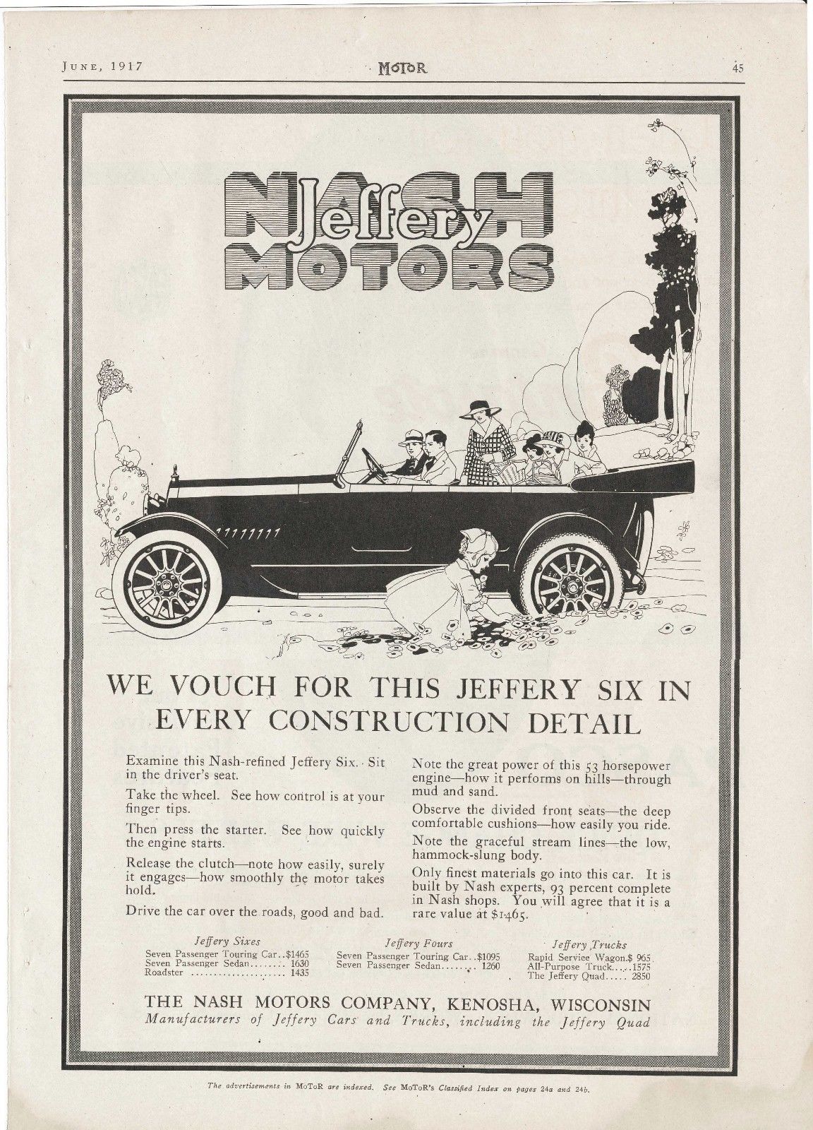 Title (ebay affiliate link): 1917 JEFFREY NASH MOTOR CAR ADVERTISEMENT KENOSHA WISCONSIN - ORIGINAL