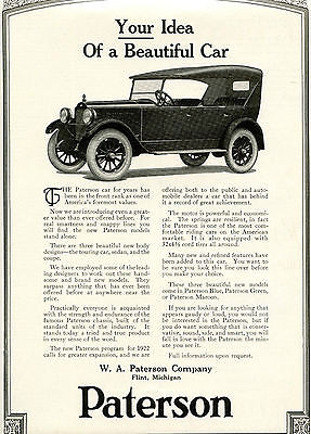 Title (ebay affiliate link): 1922 PATERSON CAR AUTOMOBILE AD W.A. PATERSON COMPANY FLINT MICHIGAN